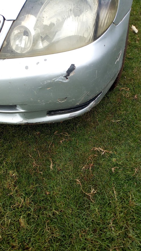 On my way back to the city that afternoon, I felt content at how I had handled the situation. I wondered how my uncle had been so indifferent that he felt no remorse whatsoever. How he went back to normal life in the city without an iota of regret was beyond me. As for me, I now had some much needed peace of mind since the incident would have nagged me for long and consumed me from the inside out. I later caught up with my uncle in the city at his huge bar and restaurant in Thika and realized that he was yet to repair the damage so I managed to snap a picture of the same as shown below while his car was at the parking lot. I never revealed to him what I had done and he also never spoke of the incident. It was as though he had confined that memory to the back of his head and he wasn’t particularly keen on ever retrieving it again.