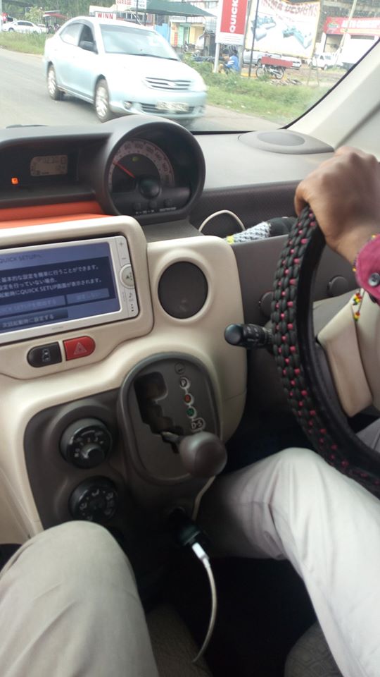 On the front are regular fabric seats that are neither comfortable nor uncomfortable, they straddle somewhere between and I suspect one would be fidgety after a very long drive since they’re quite stiff but not as stiff as the units in the probox. The dashboard on the other hand is very busy with a mix of colors and boxy design elements in tandem with the exterior. I prefer a black interior with sleek curves and chrome accents here and there but that’s just me and, furthermore, the use of 3 different colors more than made up for the lack of chrome or wood trim in the interior. I particularly disliked the instrument cluster which looked very odd as though it had been plucked from a motorbike and glued onto the center of the dashboard which I’ve always considered not to be an ideal position since you have to crane your neck to look at it while with the regular instrument cluster, you need only a quick glance without moving your head. It was however very functional and displayed all the important information such as the selected gear and the remaining fuel accurately and you get used to it quite fast. There is also a large touch screen on the center-console that was, unsurprisingly, inscribed in Japanese which made it hard to decipher and the lack of a USB port was unnerving. It did however have an aux port which I didn’t get to test out since I hadn’t carried my aux cord. While the mix of colors on the dashboard gives the impression of a premium interior, a quick feel of the actual dashboard reminds one of the quality which isn’t terrible but still not way up there. It feels rough and flimsy but at least some effort went into it but turned up short.